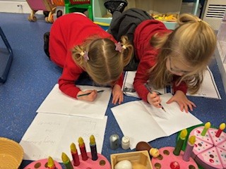 In class, the children are working very hard on learning to write their names. You can support this at home by encouraging them to begin with a capital letter and to form each letter correctly. We are using Read Write Inc. rhymes to support letter formation (these have been sent via Seesaw).